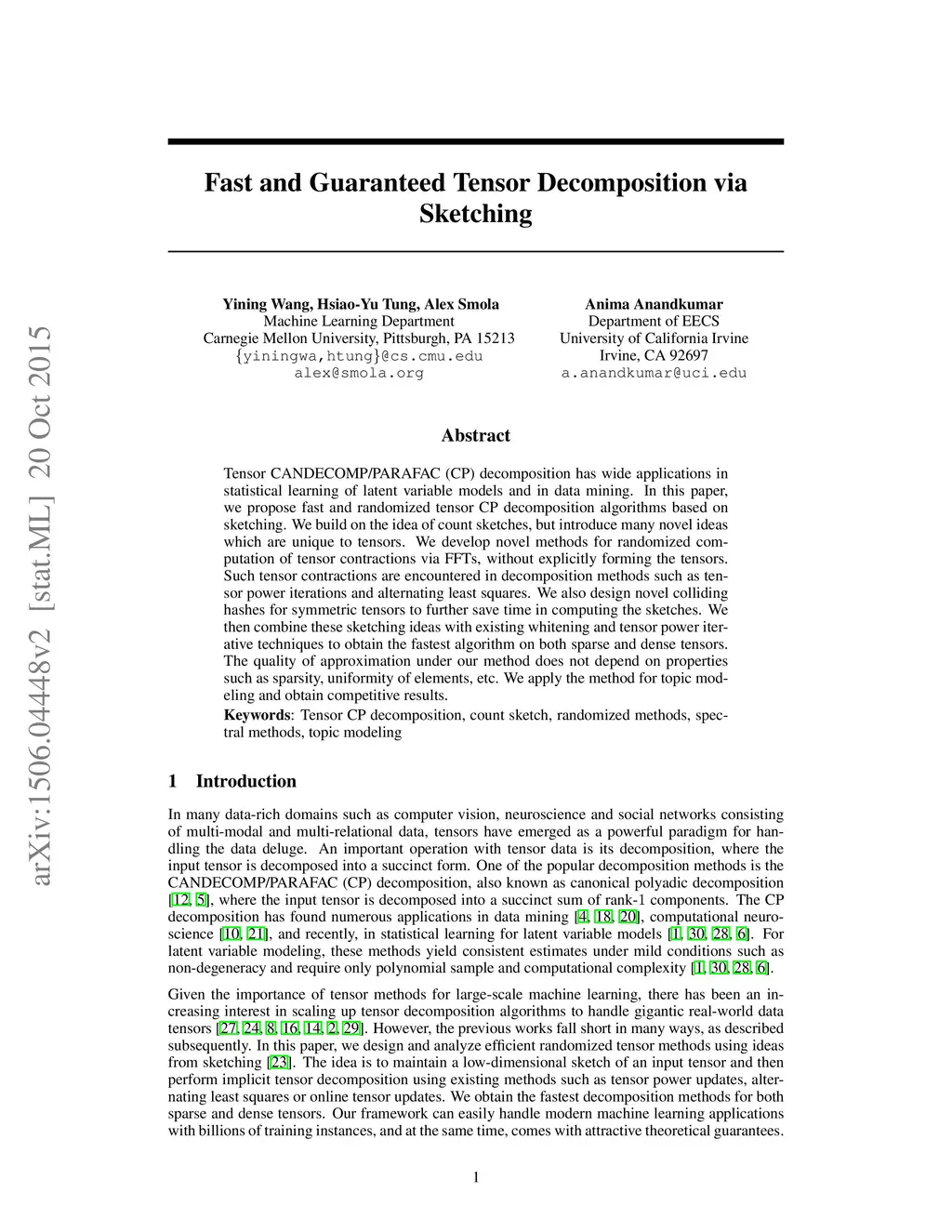 Fast and Guaranteed Tensor Decomposition via Sketching