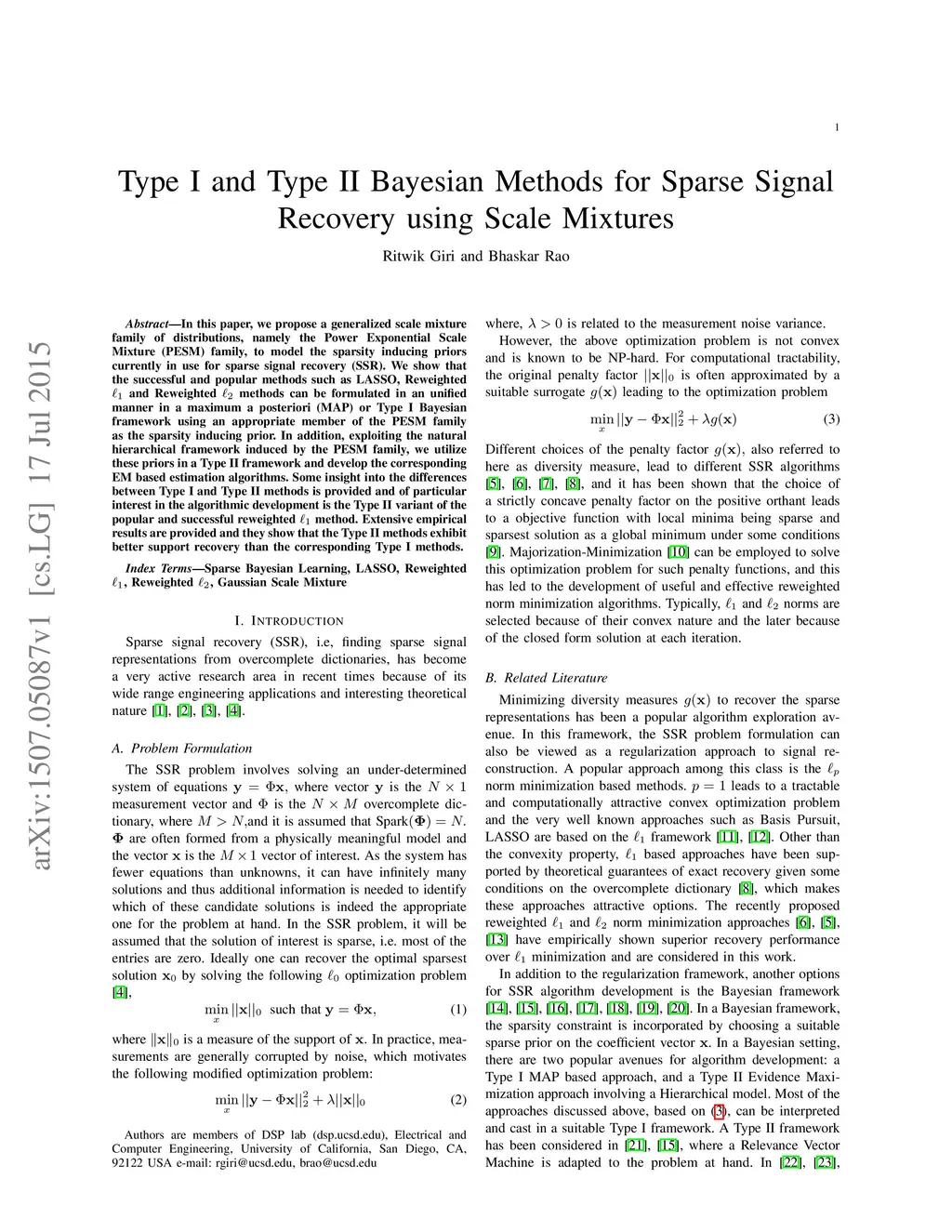 Type I and Type II Bayesian Methods for Sparse Signal Recovery using