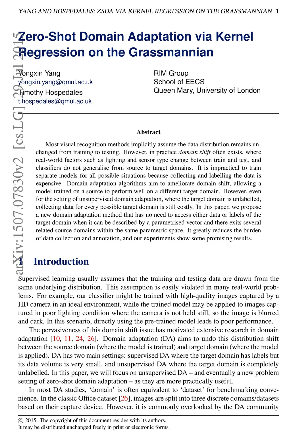 Zero-Shot Domain Adaptation via Kernel Regression on the Grassmannian