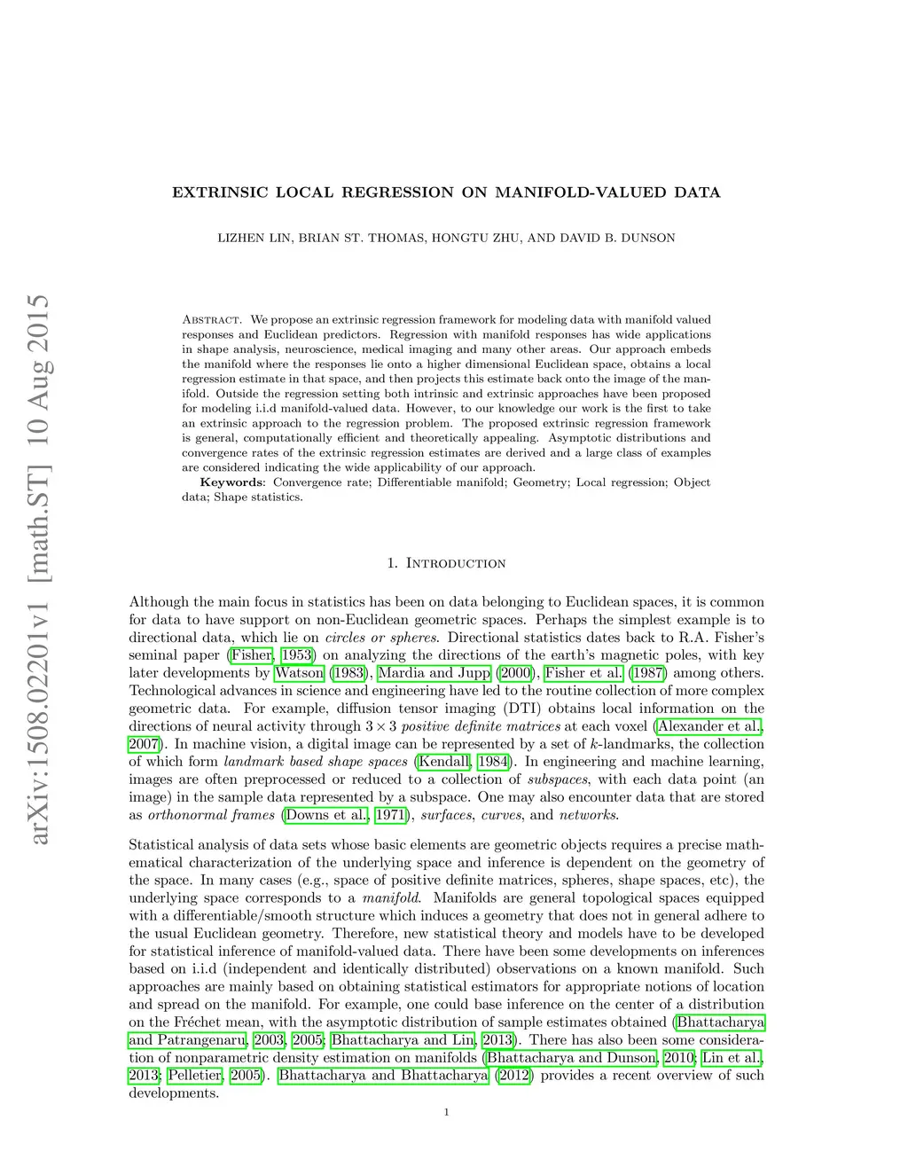 We propose an extrinsic regression framework for modeling data with manifold valued responses and Euclidean predictors. Regression with manifold responses has wide applications in shape analysis, neuroscience, medical imaging and many other areas. Our approach embeds the manifold where the responses lie onto a higher dimensional Euclidean space, obtains a local regression estimate in that space, and then projects this estimate back onto the image of the manifold. Outside the regression setting both intrinsic and extrinsic approaches have been proposed for modeling i.i.d manifold-valued data. However, to our knowledge our work is the first to take an extrinsic approach to the regression problem. The proposed extrinsic regression framework is general, computationally efficient and theoretically appealing. Asymptotic distributions and convergence rates of the extrinsic regression estimates are derived and a large class of examples are considered indicating the wide applicability of our approach.