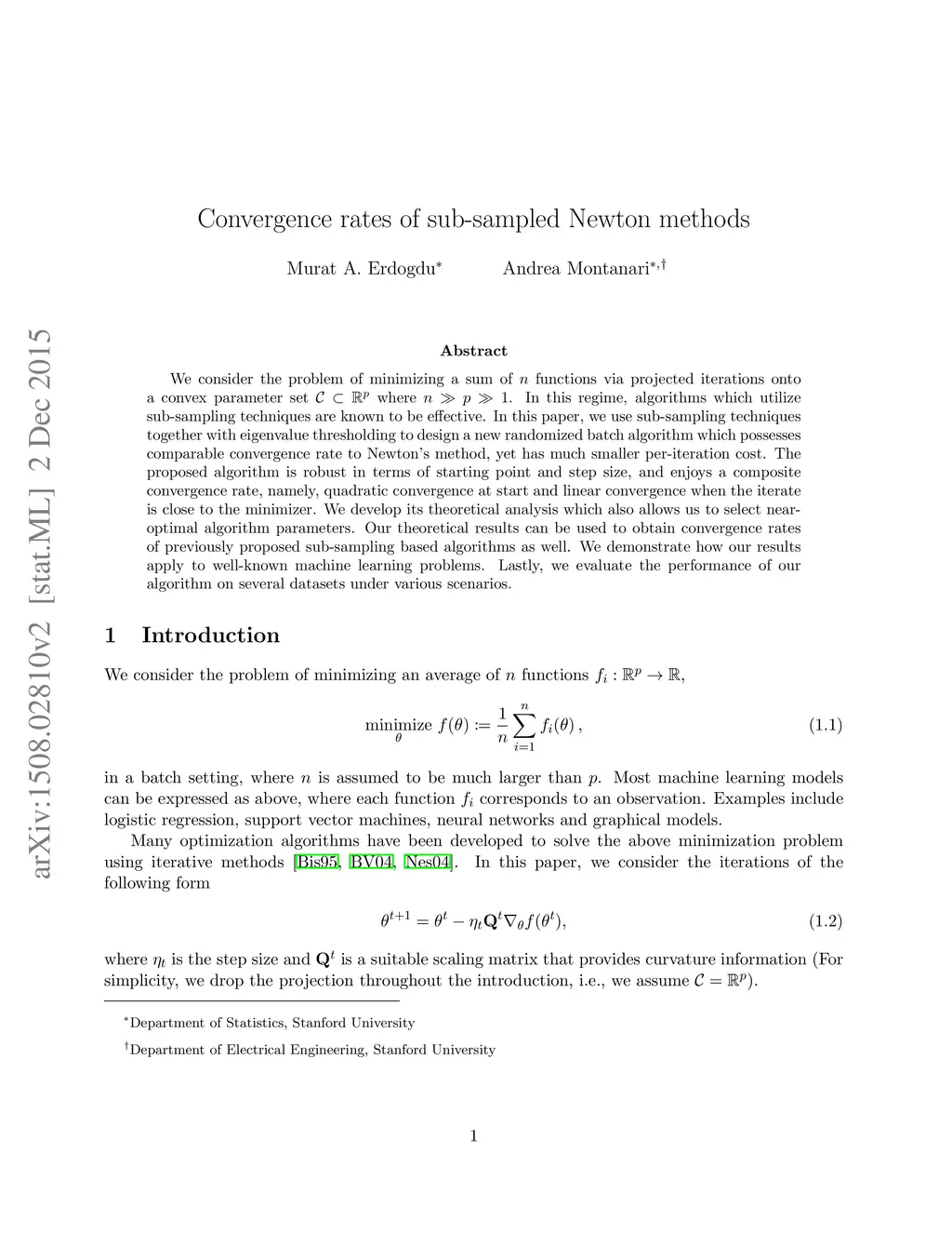 We consider the problem of minimizing a sum of functions over a convex parameter set where . In this regime, algorithms which utilize sub-sampling techniques are known to be effective. In this paper, we use sub-sampling techniques together with low-rank approximation to design a new randomized batch algorithm which possesses comparable convergence rate to Newton's method, yet has much smaller per-iteration cost. The proposed algorithm is robust in terms of starting point and step size, and enjoys a composite convergence rate, namely, quadratic convergence at start and linear convergence when the iterate is close to the minimizer. We develop its theoretical analysis which also allows us to select near-optimal algorithm parameters. Our theoretical results can be used to obtain convergence rates of previously proposed sub-sampling based algorithms as well. We demonstrate how our results apply to well-known machine learning problems. Lastly, we evaluate the performance of our algorithm on several datasets under various scenarios.