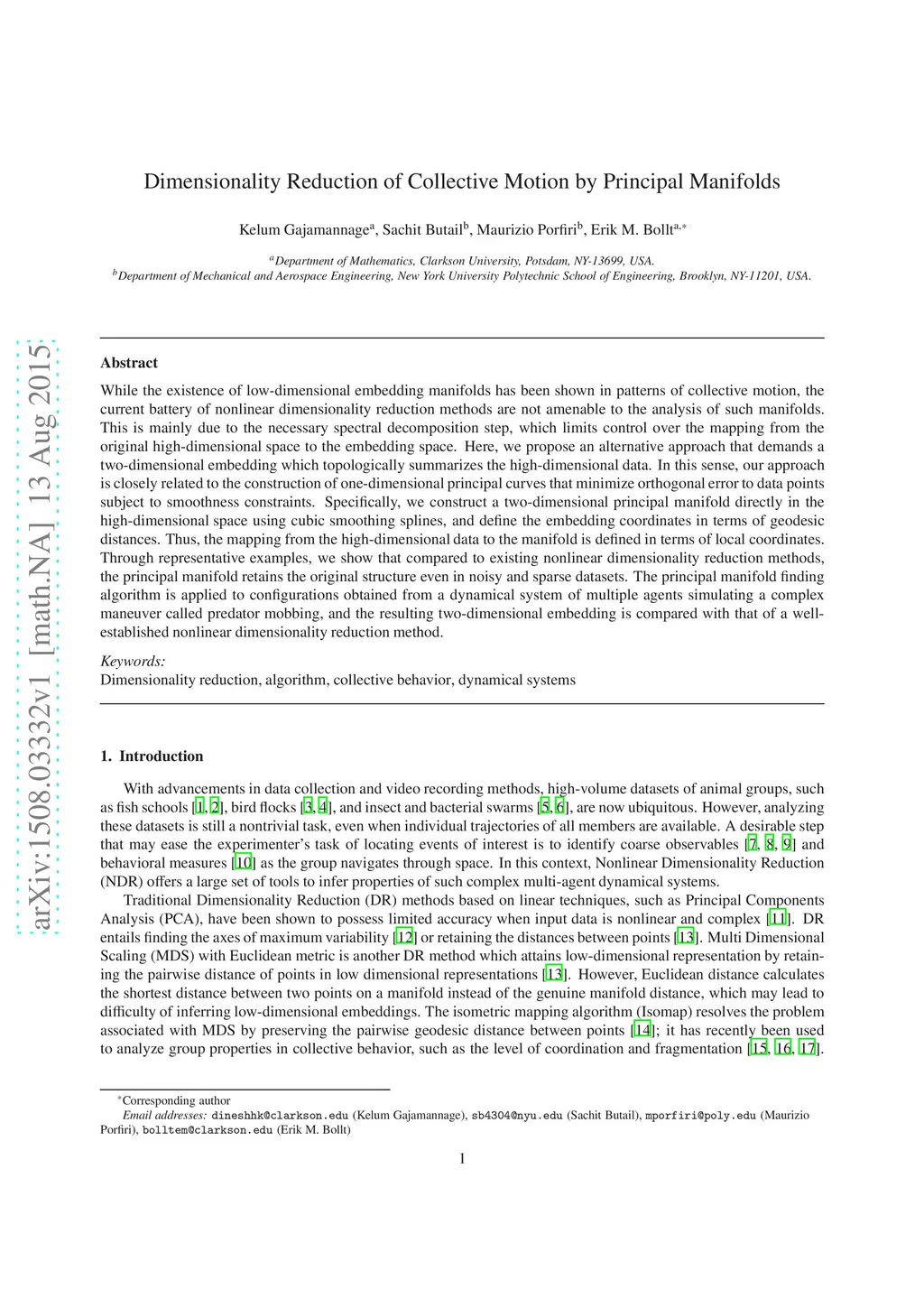 Dimensionality Reduction of Collective Motion by Principal Manifolds