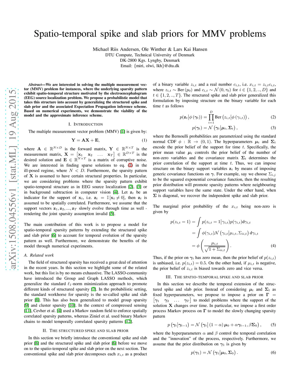 Spatio-temporal Spike and Slab Priors for Multiple Measurement Vector