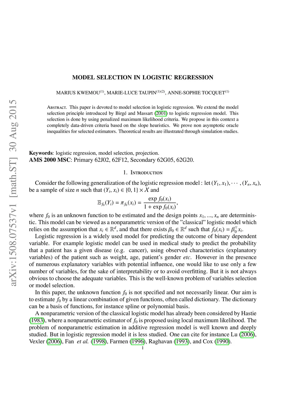 Model selection in logistic regression