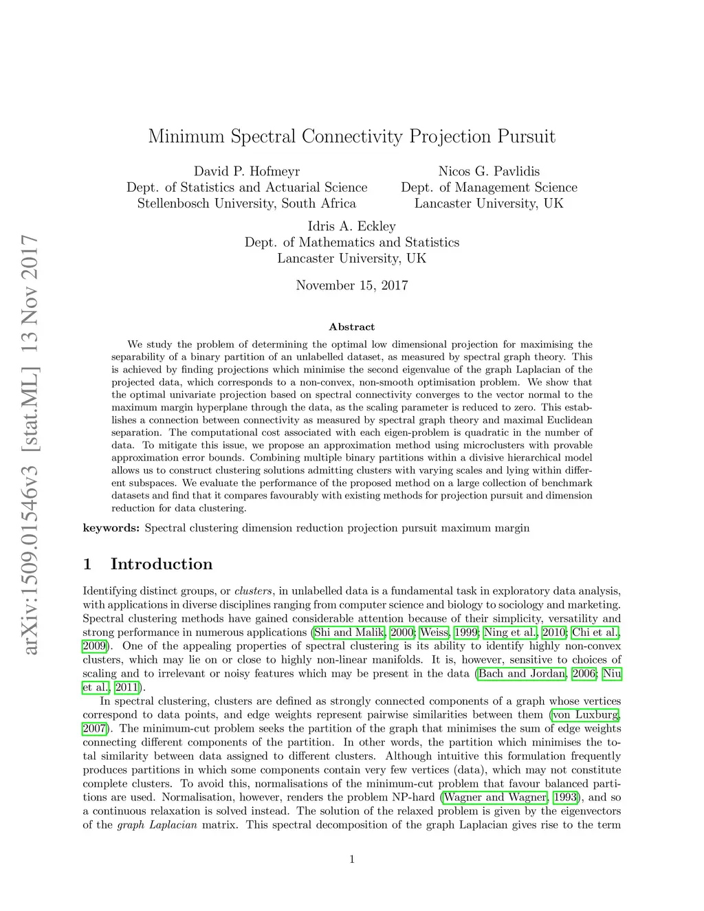 Minimum Spectral Connectivity Projection Pursuit