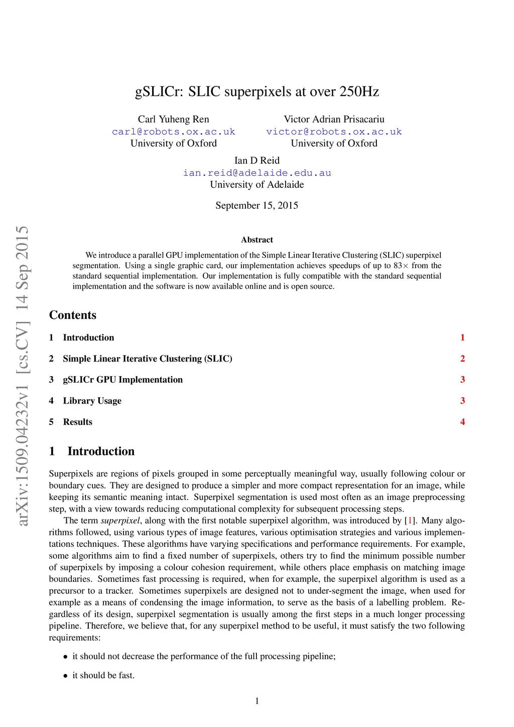 gSLICr: SLIC superpixels at over 250Hz