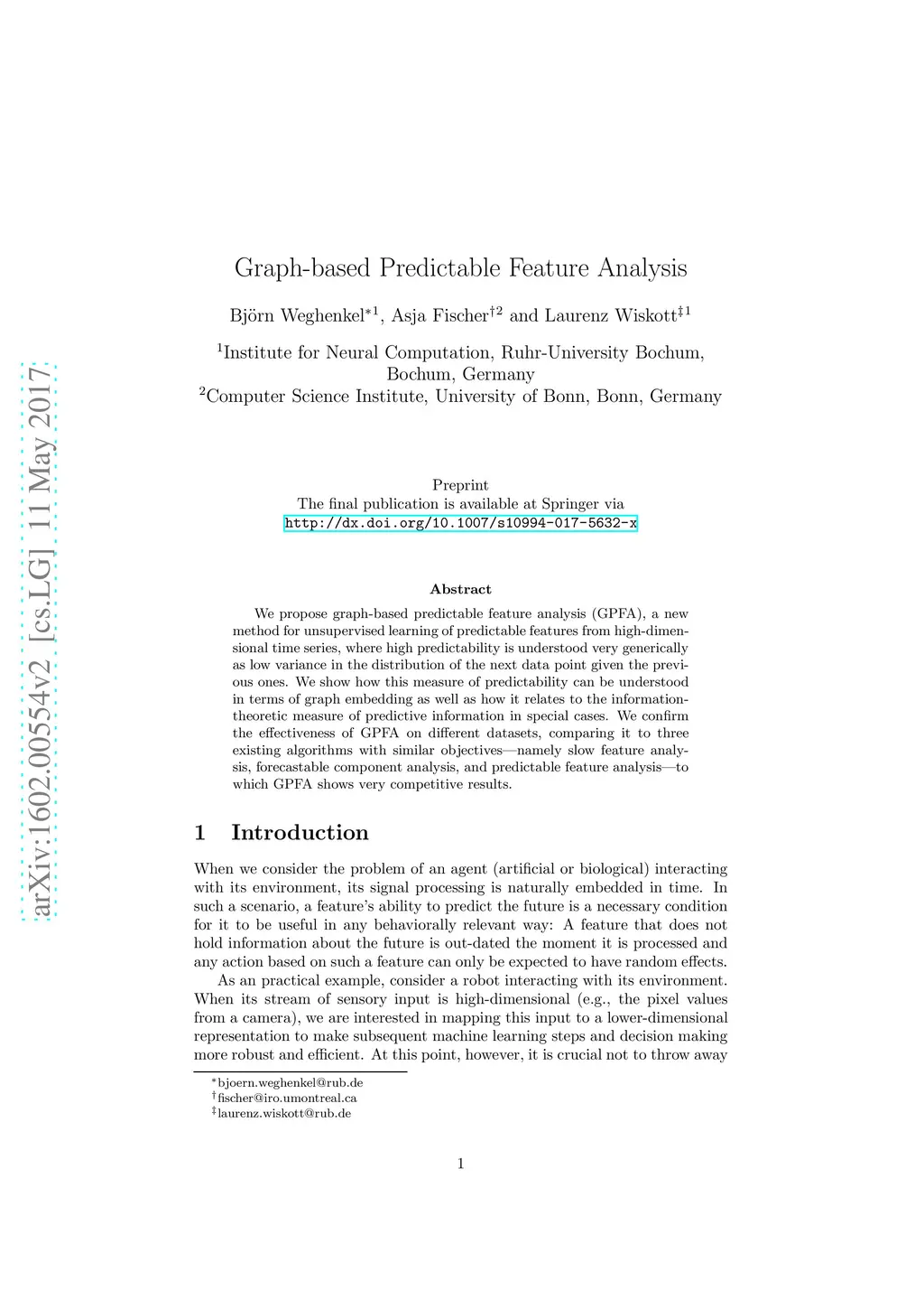 Graph-based Predictable Feature Analysis