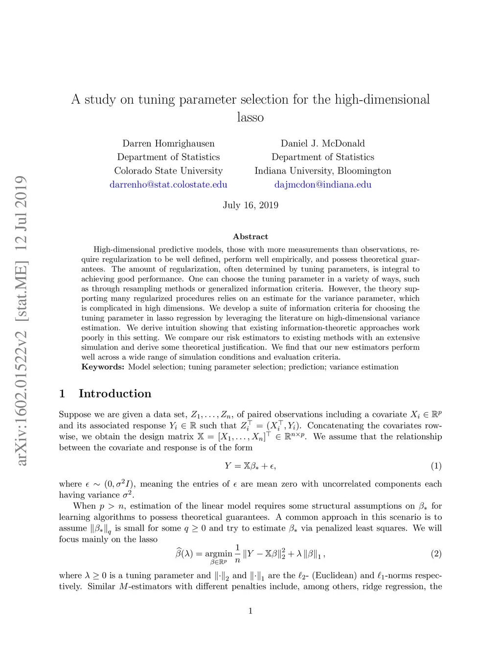High-dimensional predictive models, those with more measurements than observations, require regularization to be well defined, perform well empirically, and possess theoretical guarantees. The amount of regularization, often determined by tuning parameters, is integral to achieving good performance. One can choose the tuning parameter in a variety of ways, such as through resampling methods or generalized information criteria. However, the theory supporting many regularized procedures relies on an estimate for the variance parameter, which is complicated in high dimensions. We develop a suite of information criteria for choosing the tuning parameter in lasso regression by leveraging the literature on high-dimensional variance estimation. We derive intuition showing that existing information-theoretic approaches work poorly in this setting. We compare our risk estimators to existing methods with an extensive simulation and derive some theoretical justification. We find that our new estimators perform well across a wide range of simulation conditions and evaluation criteria.
