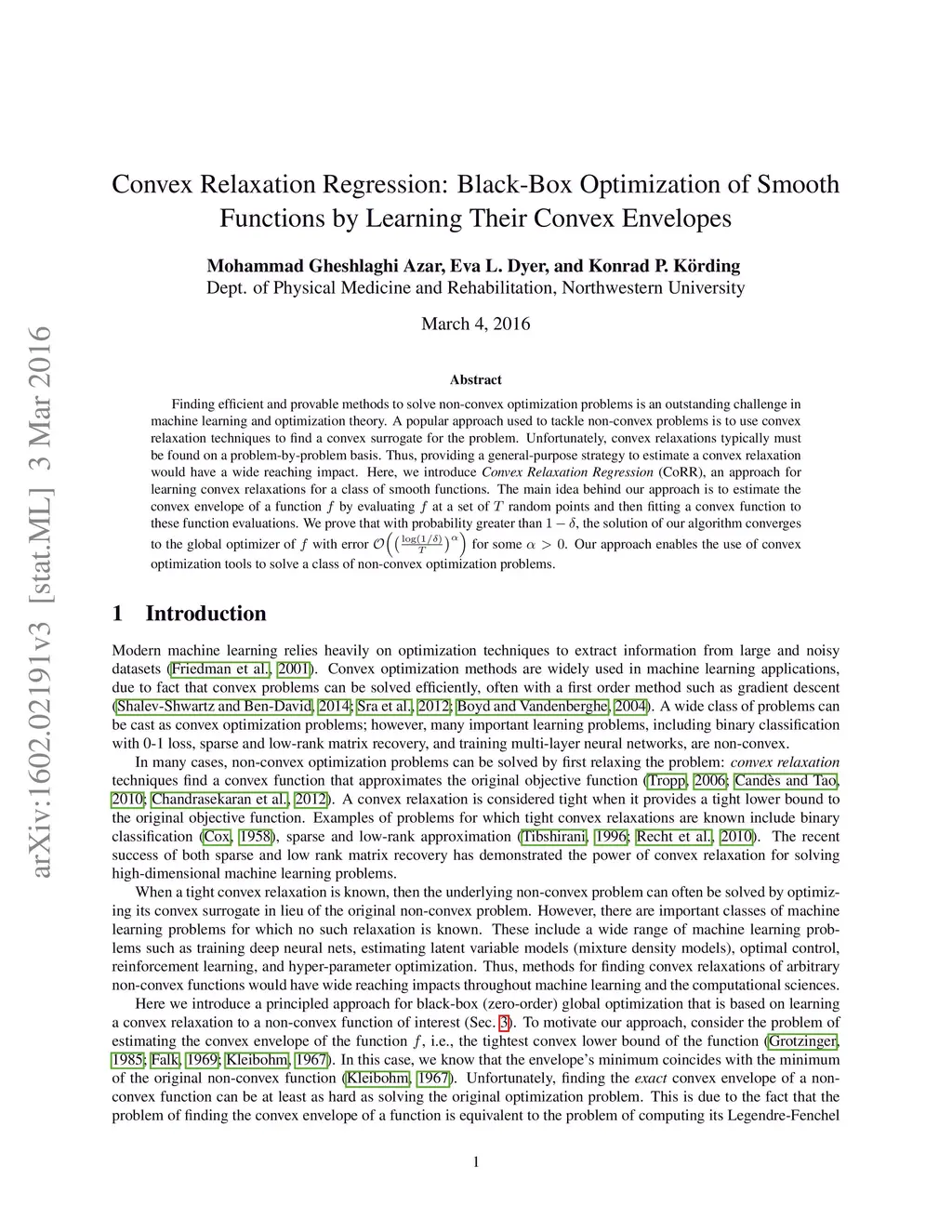 Convex Relaxation Regression: Black-Box Optimization of Smooth Functions