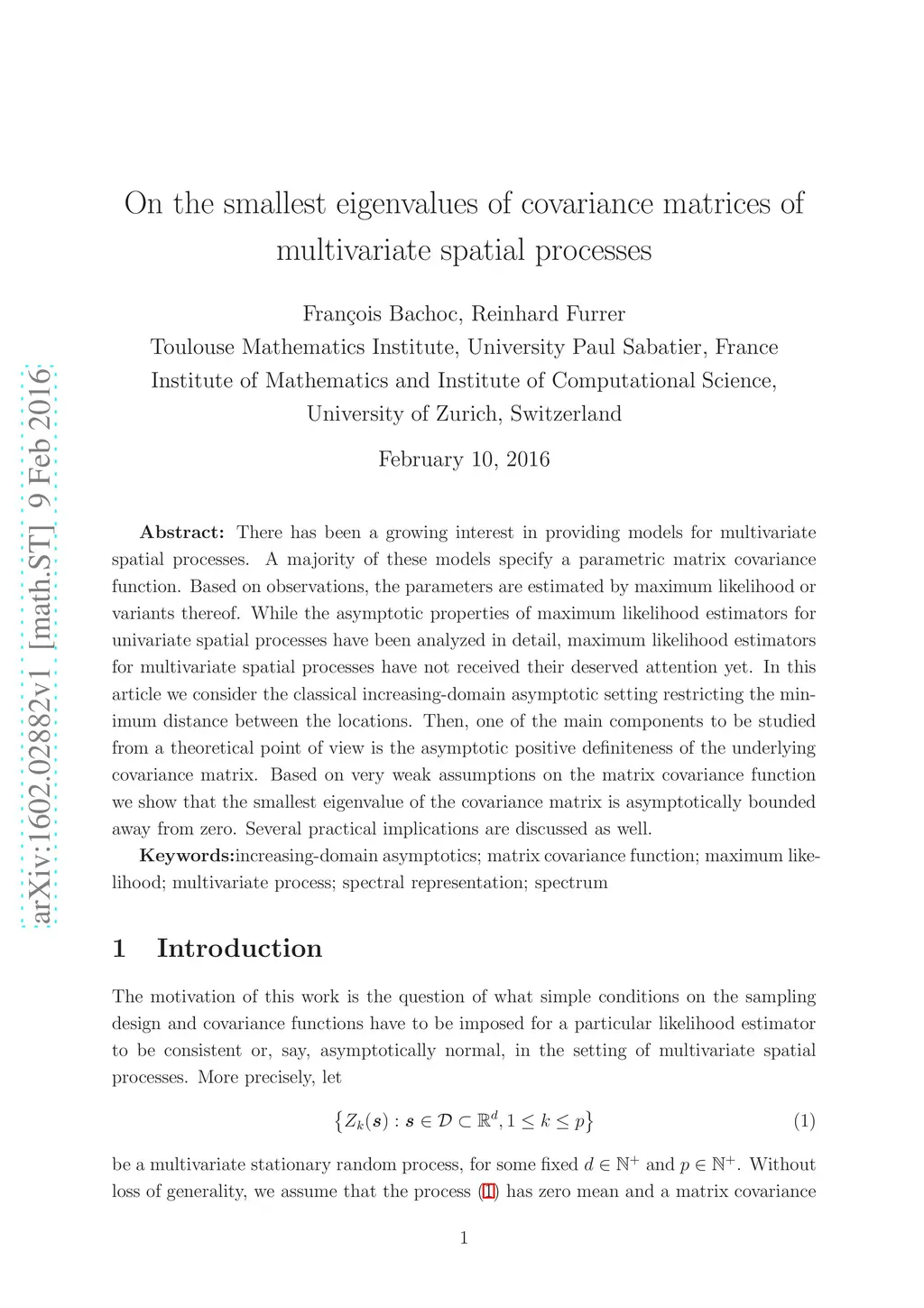 There has been a growing interest in providing models for multivariate spatial processes. A majority of these models specify a parametric matrix covariance function. Based on observations, the parameters are estimated by maximum likelihood or variants thereof. While the asymptotic properties of maximum likelihood estimators for univariate spatial processes have been analyzed in detail, maximum likelihood estimators for multivariate spatial processes have not received their deserved attention yet. In this article we consider the classical increasing-domain asymptotic setting restricting the minimum distance between the locations. Then, one of the main components to be studied from a theoretical point of view is the asymptotic positive definiteness of the underlying covariance matrix. Based on very weak assumptions on the matrix covariance function we show that the smallest eigenvalue of the covariance matrix is asymptotically bounded away from zero. Several practical implications are discussed as well.