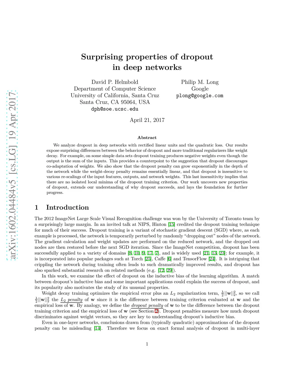 We analyze dropout in deep networks with rectified linear units and the quadratic loss. Our results expose surprising differences between the behavior of dropout and more traditional regularizers like weight decay. For example, on some simple data sets dropout training produces negative weights even though the output is the sum of the inputs. This provides a counterpoint to the suggestion that dropout discourages co-adaptation of weights. We also show that the dropout penalty can grow exponentially in the depth of the network while the weight-decay penalty remains essentially linear, and that dropout is insensitive to various re-scalings of the input features, outputs, and network weights. This last insensitivity implies that there are no isolated local minima of the dropout training criterion. Our work uncovers new properties of dropout, extends our understanding of why dropout succeeds, and lays the foundation for further progress.