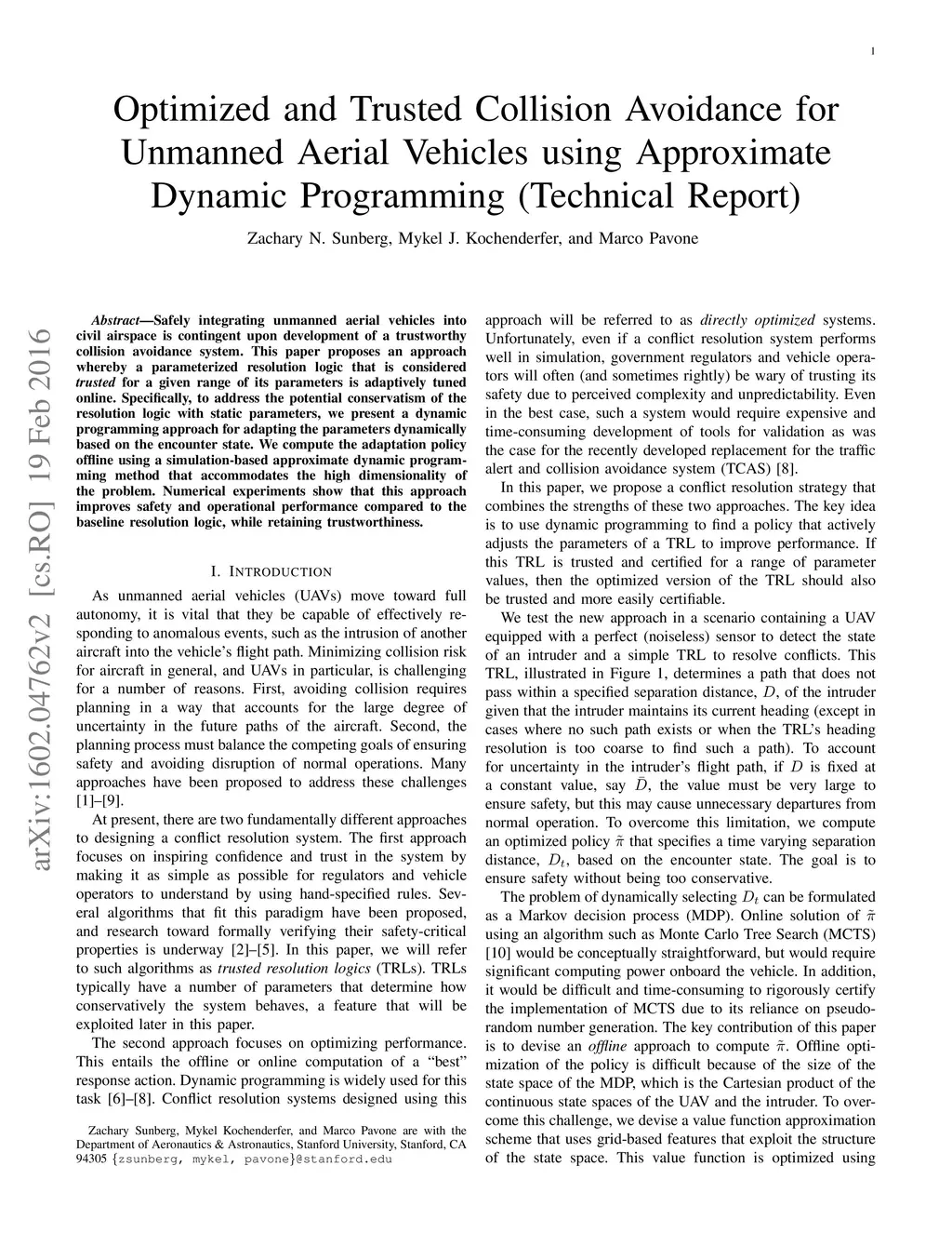 Optimized and Trusted Collision Avoidance for Unmanned Aerial Vehicles
