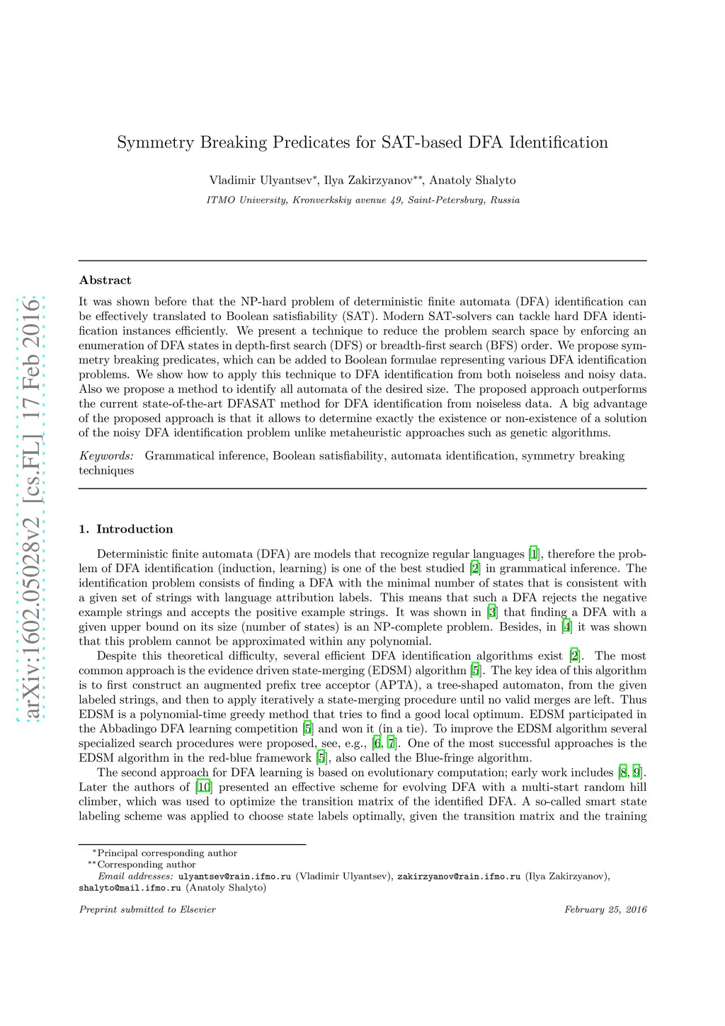 Symmetry Breaking Predicates for SAT-based DFA Identification