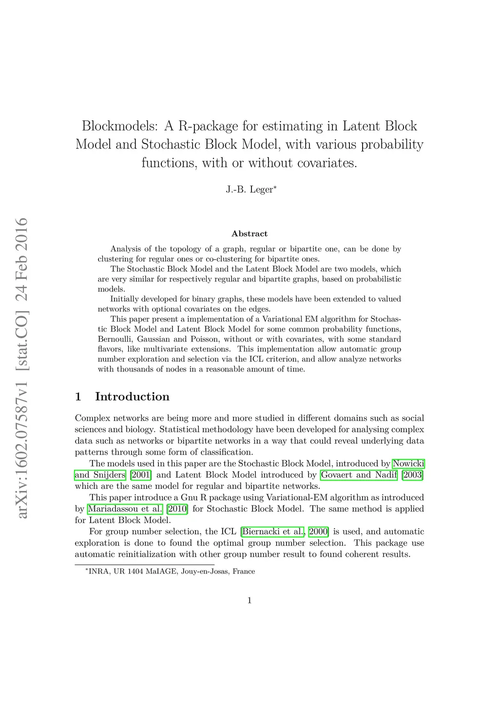 Blockmodels: A R-package for estimating in Latent Block Model and