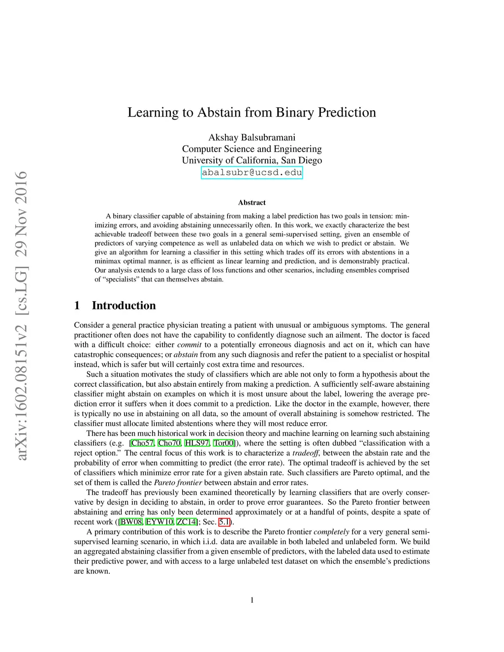 A binary classifier capable of abstaining from making a label prediction has two goals in tension: minimizing errors, and avoiding abstaining unnecessarily often. In this work, we exactly characterize the best achievable tradeoff between these two goals in a general semi-supervised setting, given an ensemble of predictors of varying competence as well as unlabeled data on which we wish to predict or abstain. We give an algorithm for learning a classifier in this setting which trades off its errors with abstentions in a minimax optimal manner, is as efficient as linear learning and prediction, and is demonstrably practical. Our analysis extends to a large class of loss functions and other scenarios, including ensembles comprised of specialists that can themselves abstain.