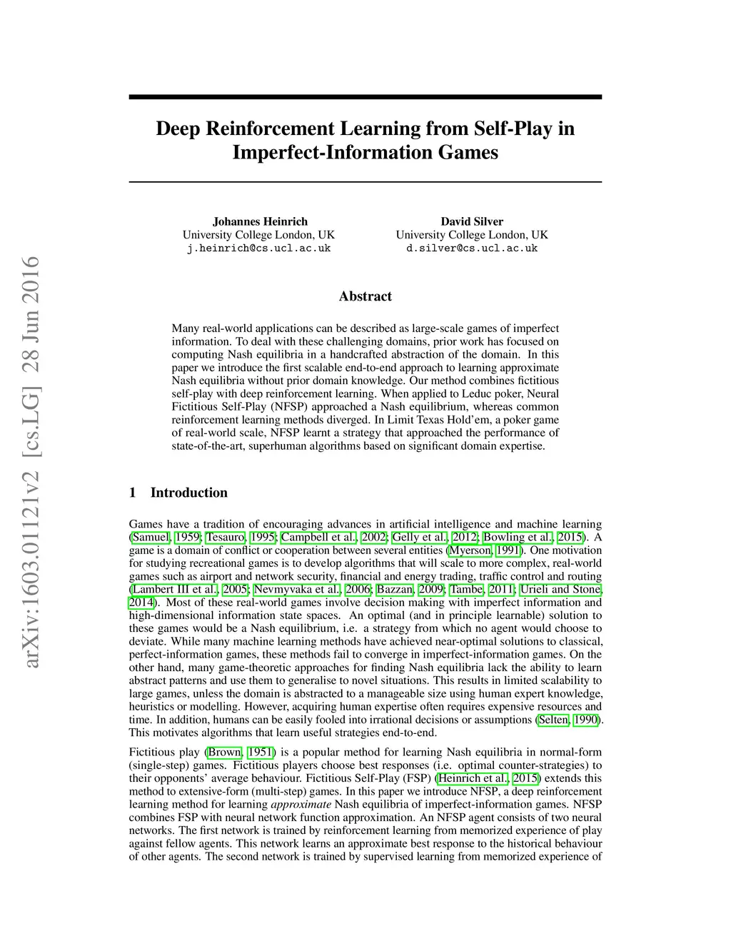 Deep Reinforcement Learning from Self-Play in Imperfect-Information