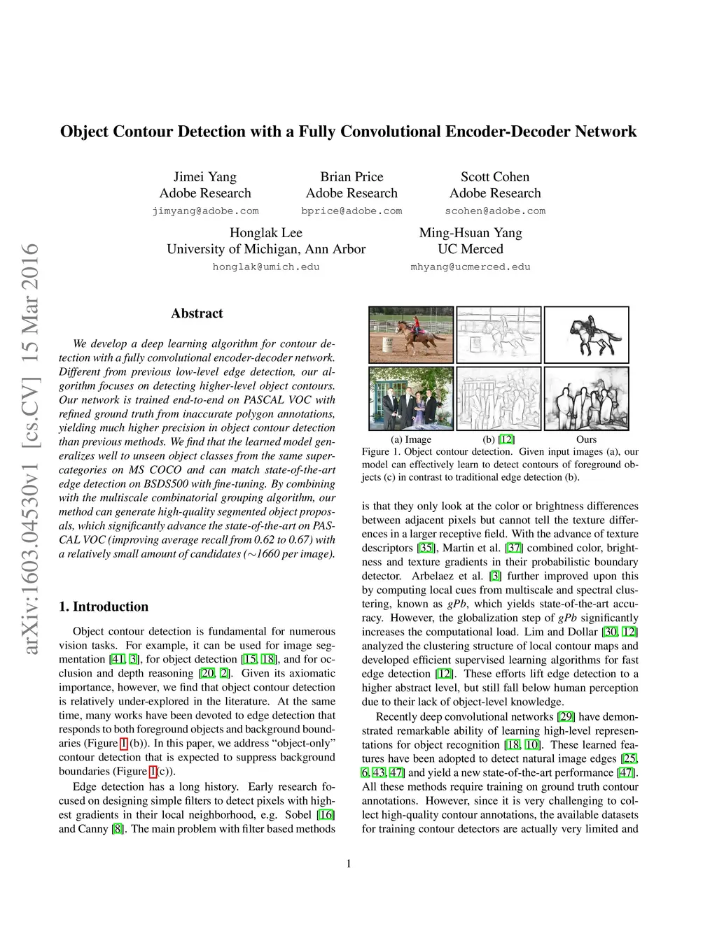 Object Contour Detection with a Fully Convolutional Encoder-Decoder