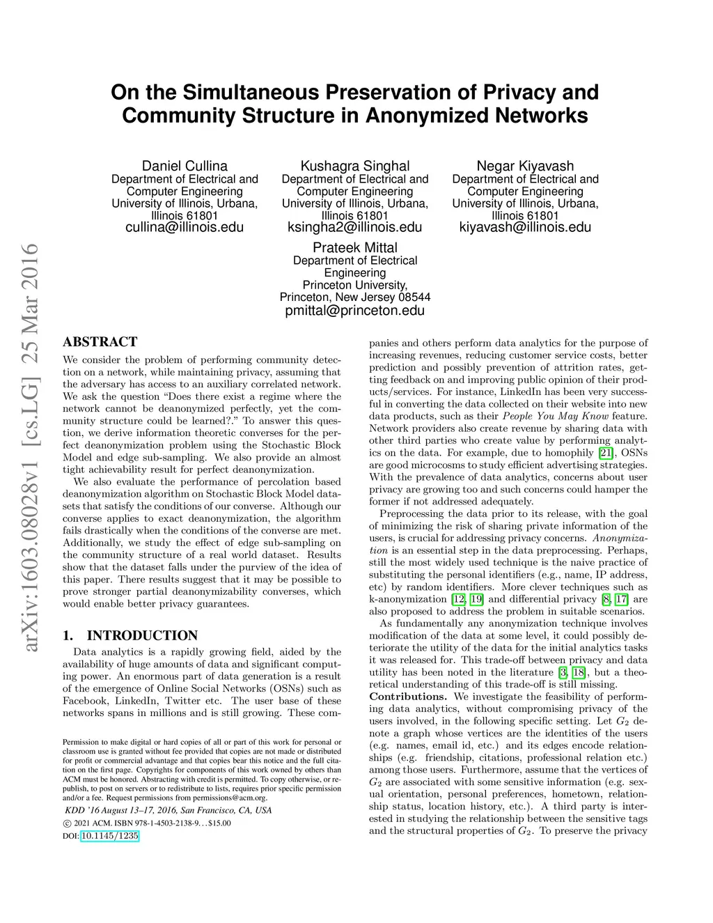 On the Simultaneous Preservation of Privacy and Community Structure in