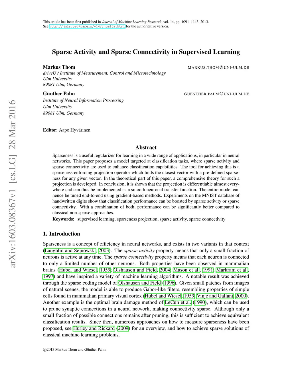 Sparse Activity and Sparse Connectivity in Supervised Learning