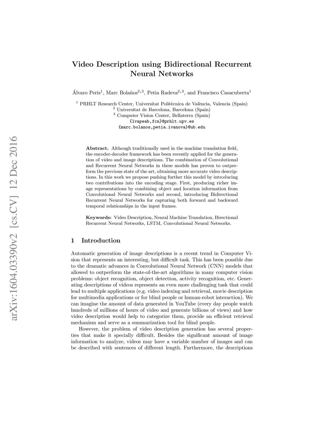 Video Description using Bidirectional Recurrent Neural Networks