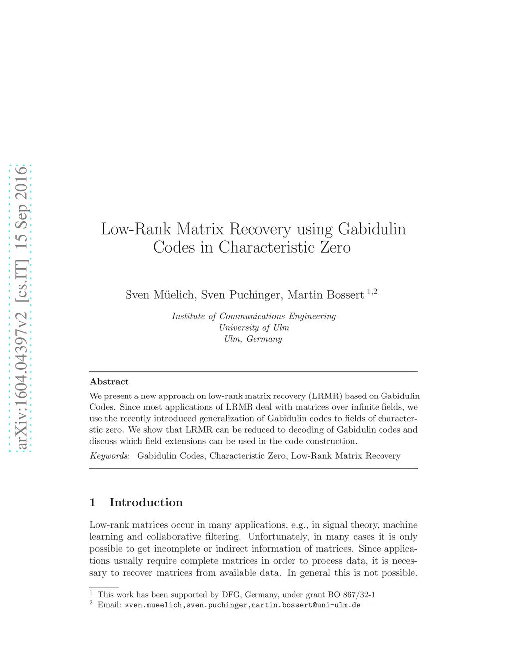 Low-Rank Matrix Recovery using Gabidulin Codes in Characteristic Zero