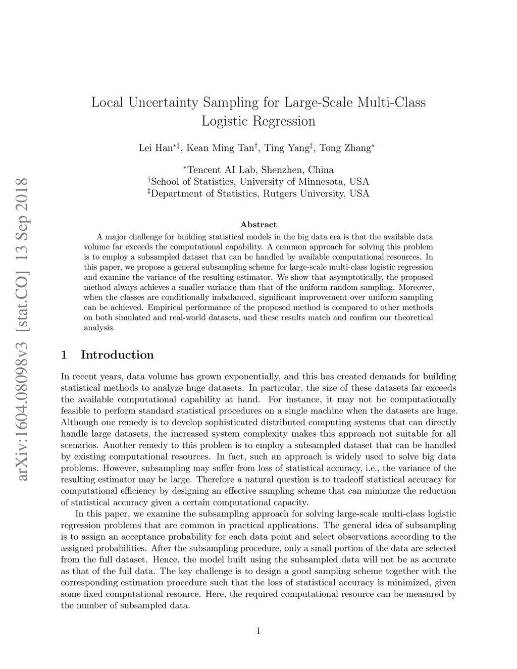Local Uncertainty Sampling for Large-Scale Multi-Class Logistic