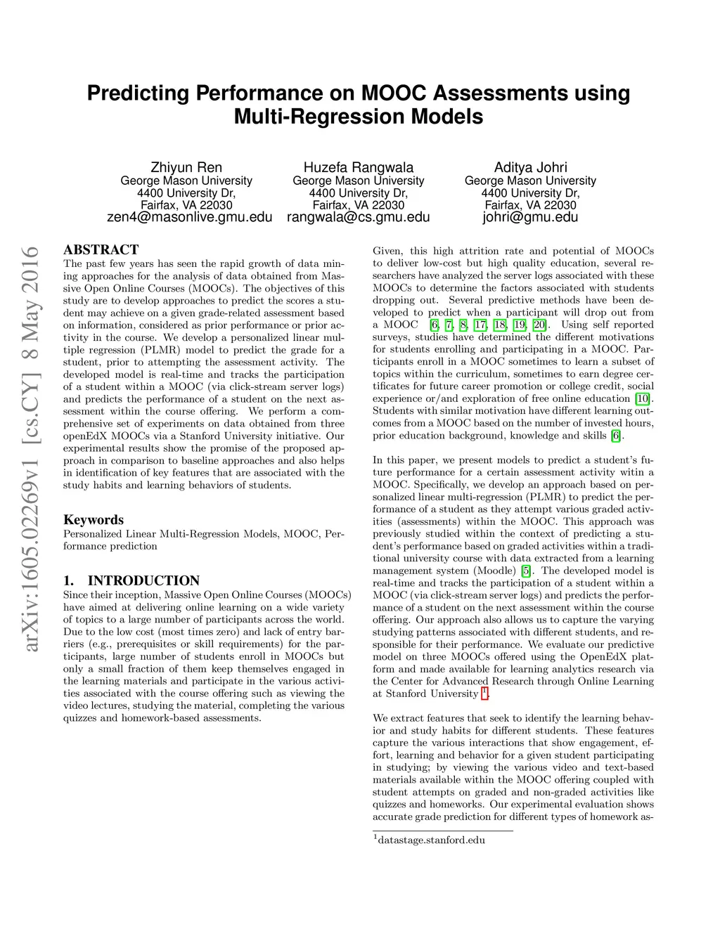 Predicting Performance on MOOC Assessments using Multi-Regression Models