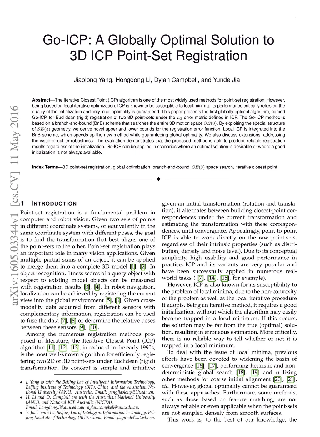 Go-ICP: A Globally Optimal Solution to 3D ICP Point-Set Registration