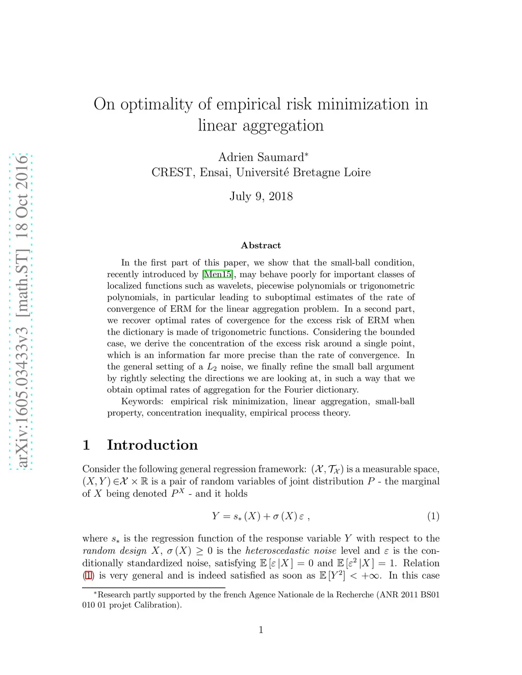 In the first part of this paper, we show that the small-ball condition, recently introduced by Mendelson (2015), may behave poorly for important classes of localized functions such as wavelets, piecewise polynomials or trigonometric polynomials, in particular leading to suboptimal estimates of the rate of convergence of ERM for the linear aggregation problem. In a second part, we recover optimal rates of covergence for the excess risk of ERM when the dictionary is made of trigonometric functions. Considering the bounded case, we derive the concentration of the excess risk around a single point, which is an information far more precise than the rate of convergence. In the general setting of a L2 noise, we finally refine the small ball argument by rightly selecting the directions we are looking at, in such a way that we obtain optimal rates of aggregation for the Fourier dictionary.