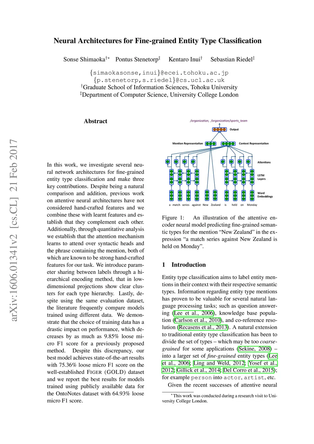 In this work, we investigate several neural network architectures for fine-grained entity type classification. Particularly, we consider extensions to a recently proposed attentive neural architecture and make three key contributions. Previous work on attentive neural architectures do not consider hand-crafted features, we combine learnt and hand-crafted features and observe that they complement each other. Additionally, through quantitative analysis we establish that the attention mechanism is capable of learning to attend over syntactic heads and the phrase containing the mention, where both are known strong hand-crafted features for our task. We enable parameter sharing through a hierarchical label encoding method, that in low-dimensional projections show clear clusters for each type hierarchy. Lastly, despite using the same evaluation dataset, the literature frequently compare models trained using different data. We establish that the choice of training data has a drastic impact on performance, with decreases by as much as 9.85% loose micro F1 score for a previously proposed method. Despite this, our best model achieves state-of-the-art results with 75.36% loose micro F1 score on the well- established FIGER (GOLD) dataset.