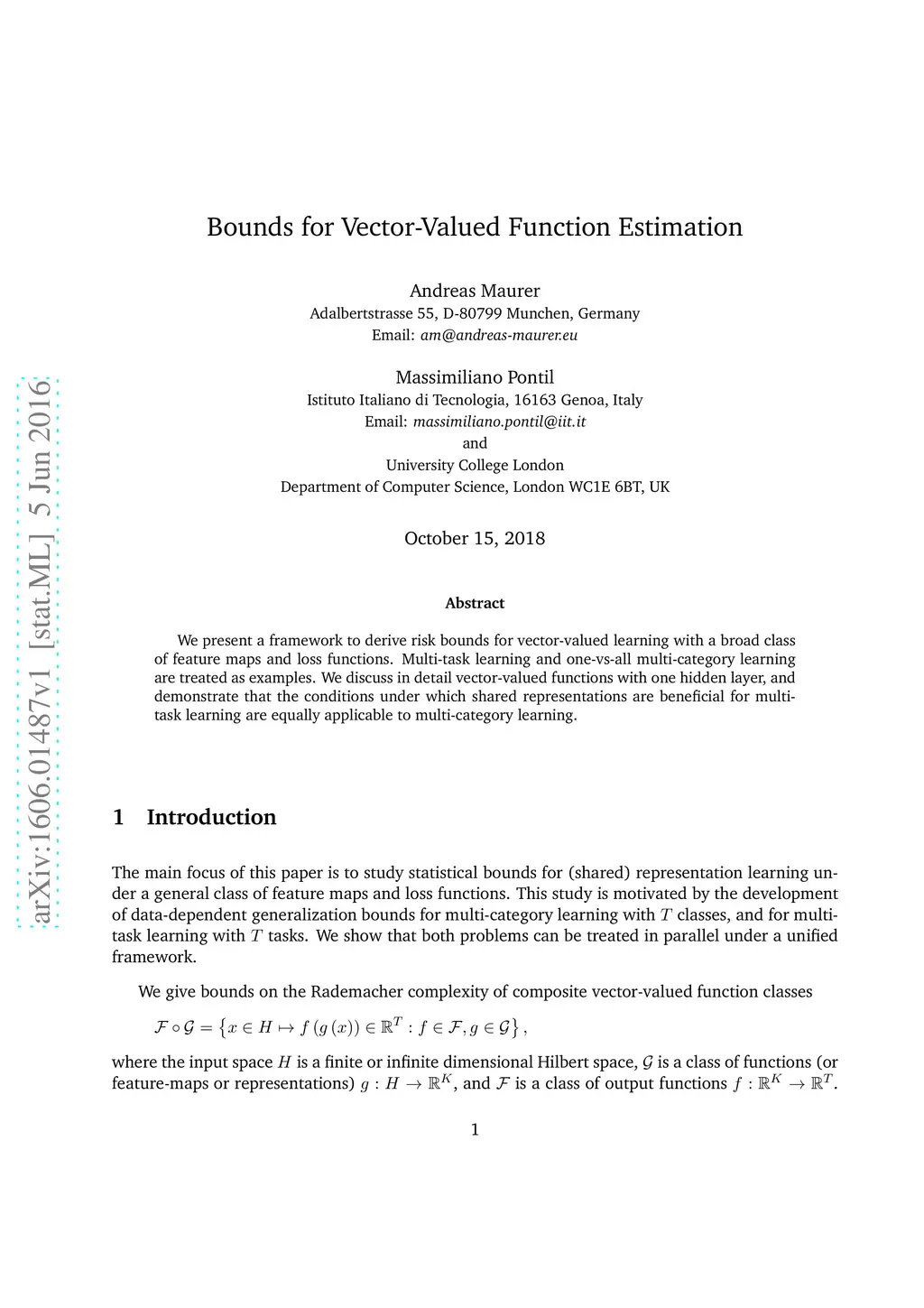 Bounds for Vector-Valued Function Estimation