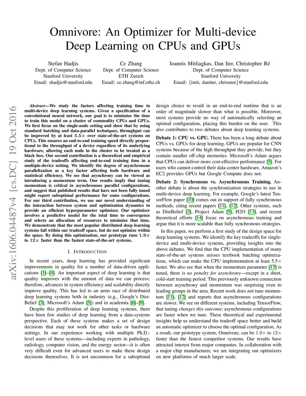 Omnivore: An Optimizer for Multi-device Deep Learning on CPUs and GPUs