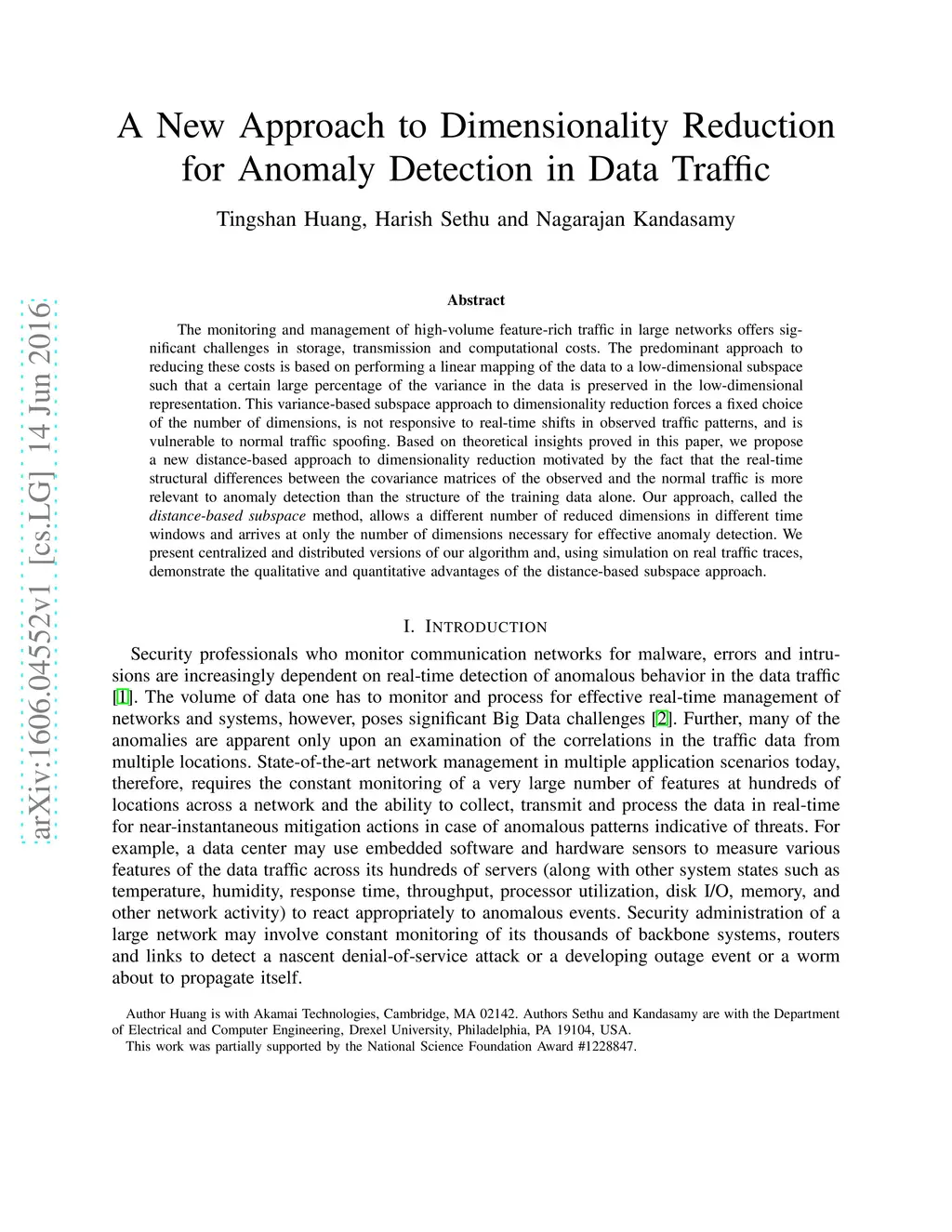 The monitoring and management of high-volume feature-rich traffic in large networks offers significant challenges in storage, transmission and computational costs. The predominant approach to reducing these costs is based on performing a linear mapping of the data to a low-dimensional subspace such that a certain large percentage of the variance in the data is preserved in the low-dimensional representation. This variance-based subspace approach to dimensionality reduction forces a fixed choice of the number of dimensions, is not responsive to real-time shifts in observed traffic patterns, and is vulnerable to normal traffic spoofing. Based on theoretical insights proved in this paper, we propose a new distance-based approach to dimensionality reduction motivated by the fact that the real-time structural differences between the covariance matrices of the observed and the normal traffic is more relevant to anomaly detection than the structure of the training data alone. Our approach, called the distance-based subspace method, allows a different number of reduced dimensions in different time windows and arrives at only the number of dimensions necessary for effective anomaly detection. We present centralized and distributed versions of our algorithm and, using simulation on real traffic traces, demonstrate the qualitative and quantitative advantages of the distance-based subspace approach.