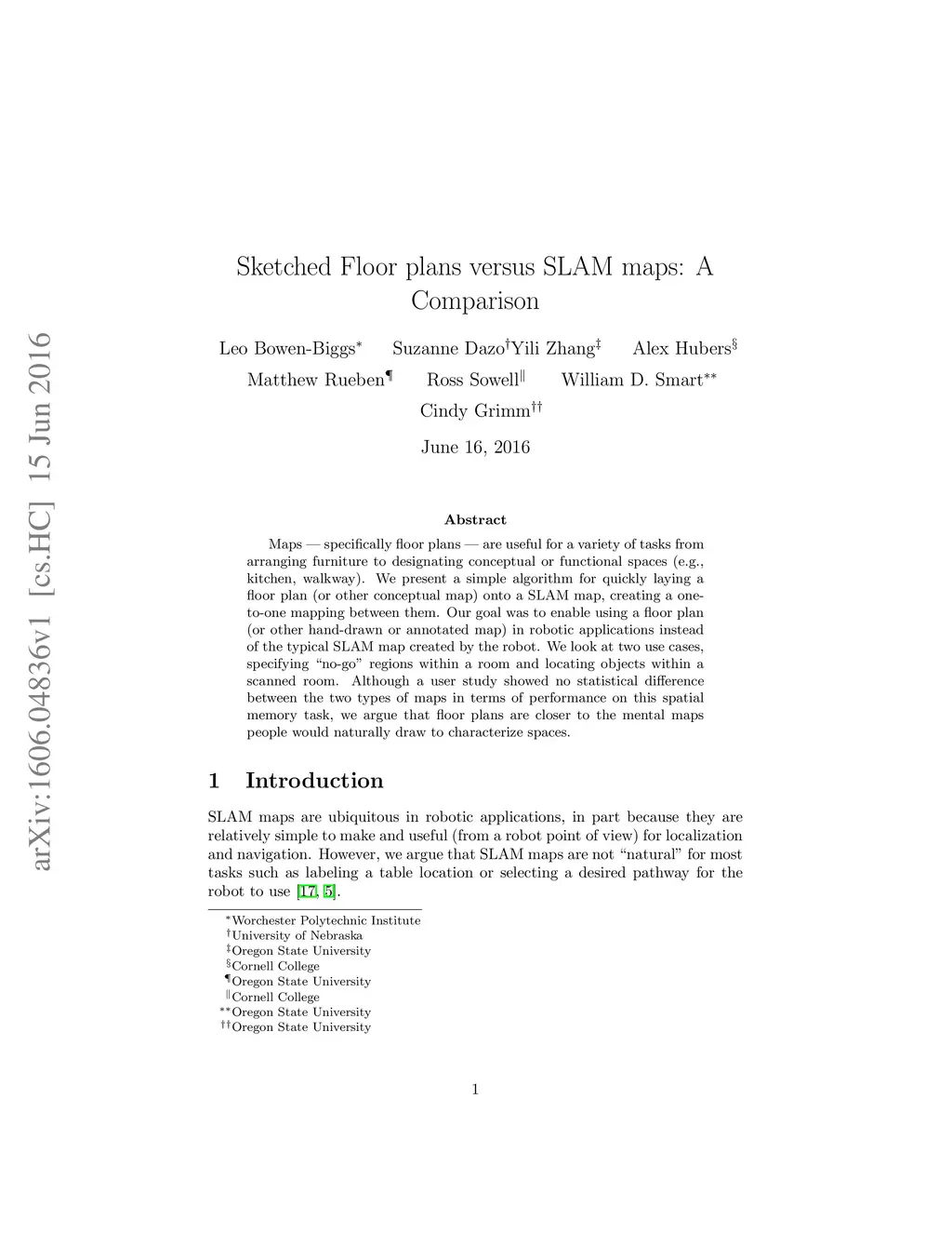 Sketched Floor plans versus SLAM maps: A Comparison