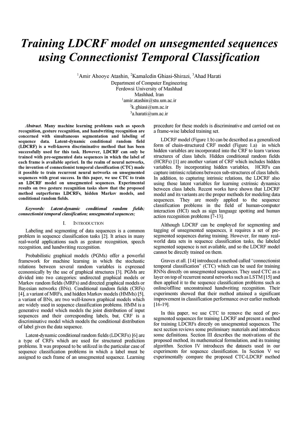 Training LDCRF model on unsegmented sequences using Connectionist