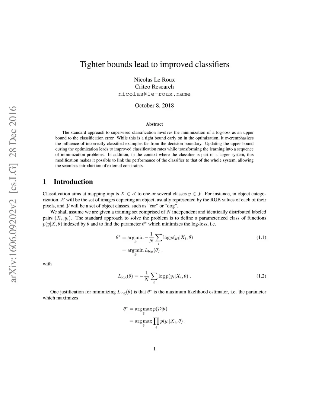 The standard approach to supervised classification involves the minimization of a log-loss as an upper bound to the classification error. While this is a tight bound early on in the optimization, it overemphasizes the influence of incorrectly classified examples far from the decision boundary. Updating the upper bound during the optimization leads to improved classification rates while transforming the learning into a sequence of minimization problems. In addition, in the context where the classifier is part of a larger system, this modification makes it possible to link the performance of the classifier to that of the whole system, allowing the seamless introduction of external constraints.