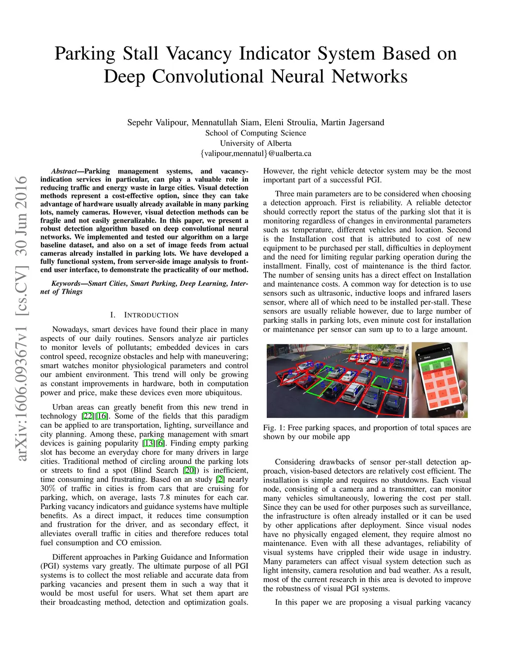 Parking Stall Vacancy Indicator System Based on Deep Convolutional