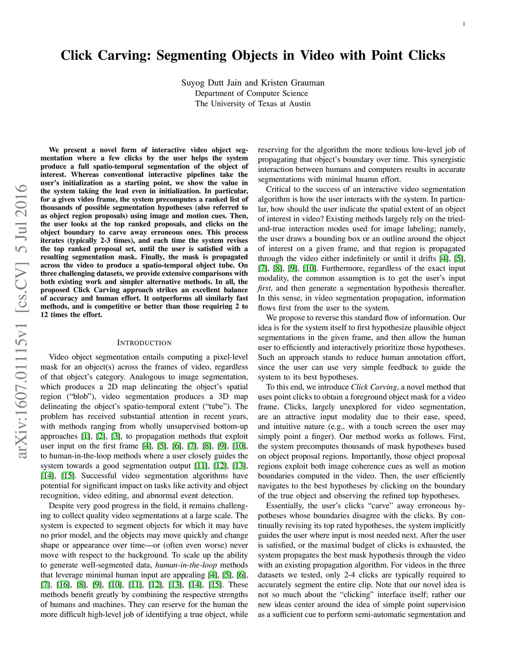 Click Carving: Segmenting Objects in Video with Point Clicks