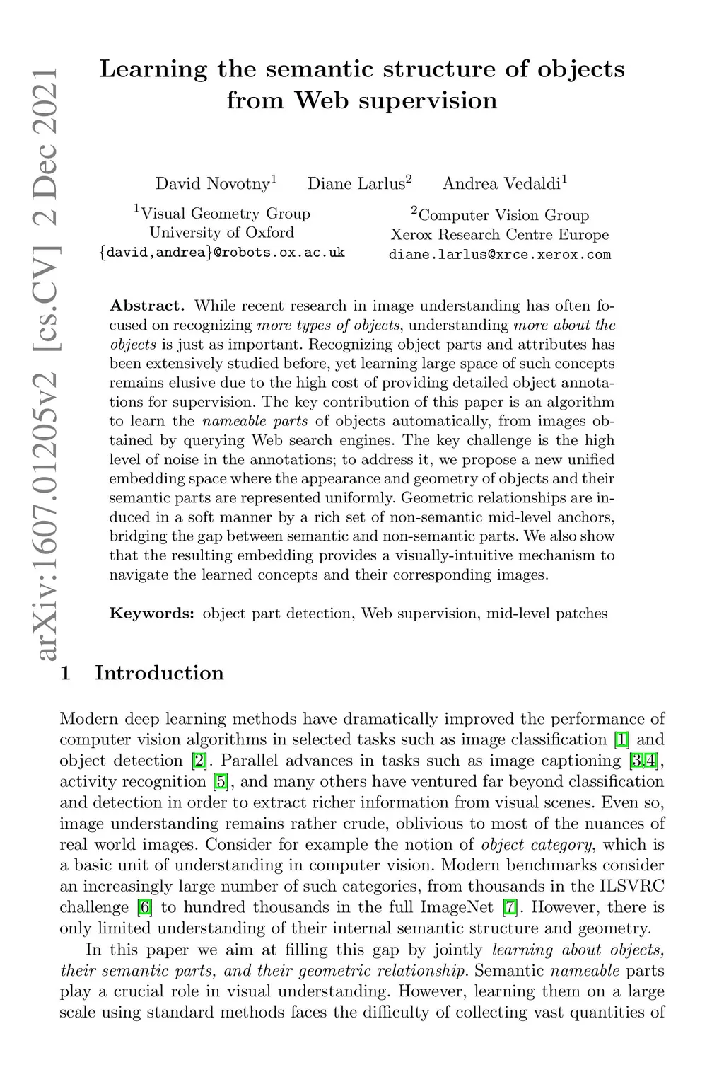 While recent research in image understanding has often focused on recognizing more types of objects, understanding more about the objects is just as important. Recognizing object parts and attributes has been extensively studied before, yet learning large space of such concepts remains elusive due to the high cost of providing detailed object annotations for supervision. The key contribution of this paper is an algorithm to learn the nameable parts of objects automatically, from images obtained by querying Web search engines. The key challenge is the high level of noise in the annotations; to address it, we propose a new unified embedding space where the appearance and geometry of objects and their semantic parts are represented uniformly. Geometric relationships are induced in a soft manner by a rich set of nonsemantic mid-level anchors, bridging the gap between semantic and non-semantic parts. We also show that the resulting embedding provides a visually-intuitive mechanism to navigate the learned concepts and their corresponding images.