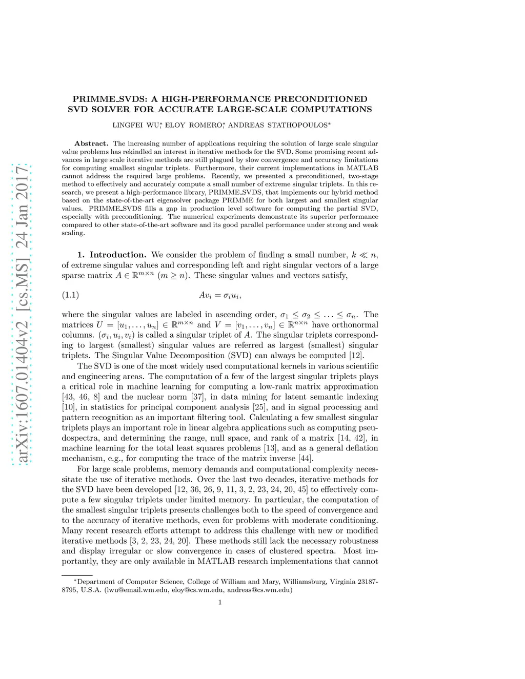PRIMME_SVDS: A High-Performance Preconditioned SVD Solver for Accurate