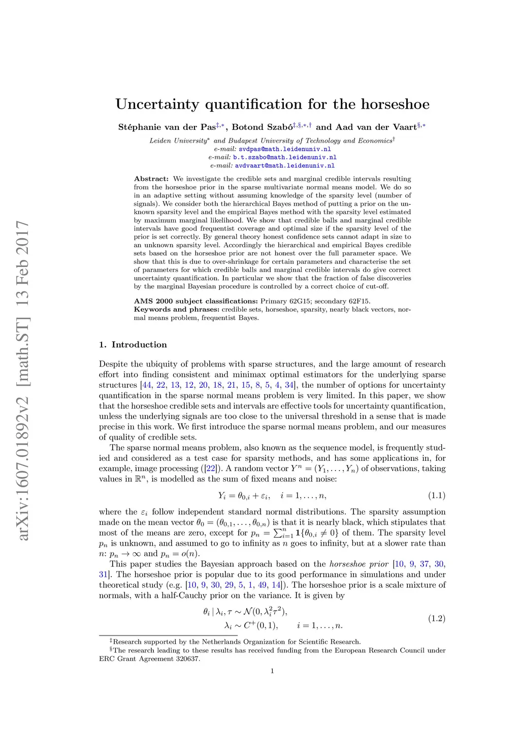Uncertainty quantification for the horseshoe
