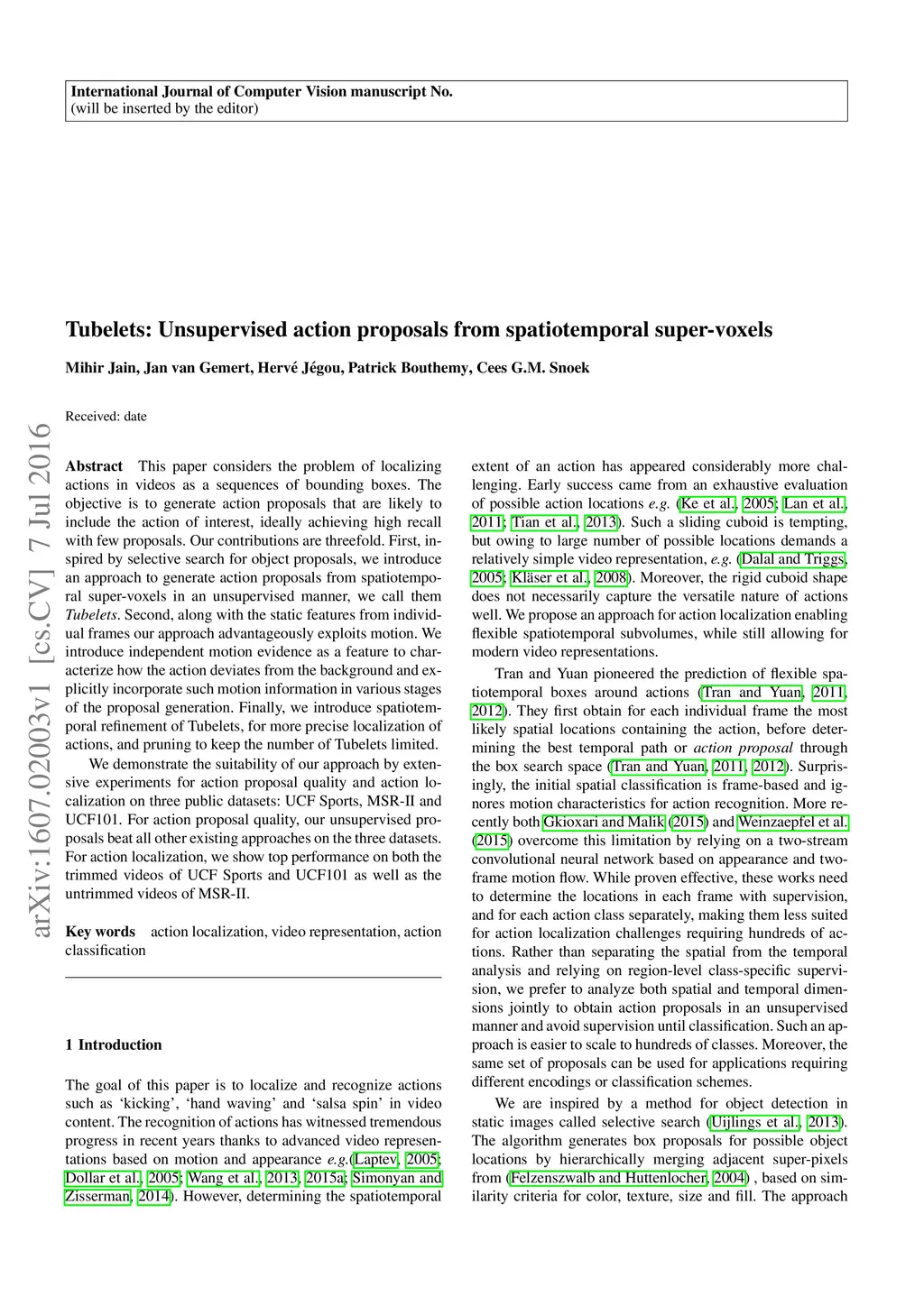 Tubelets: Unsupervised action proposals from spatiotemporal super-voxels