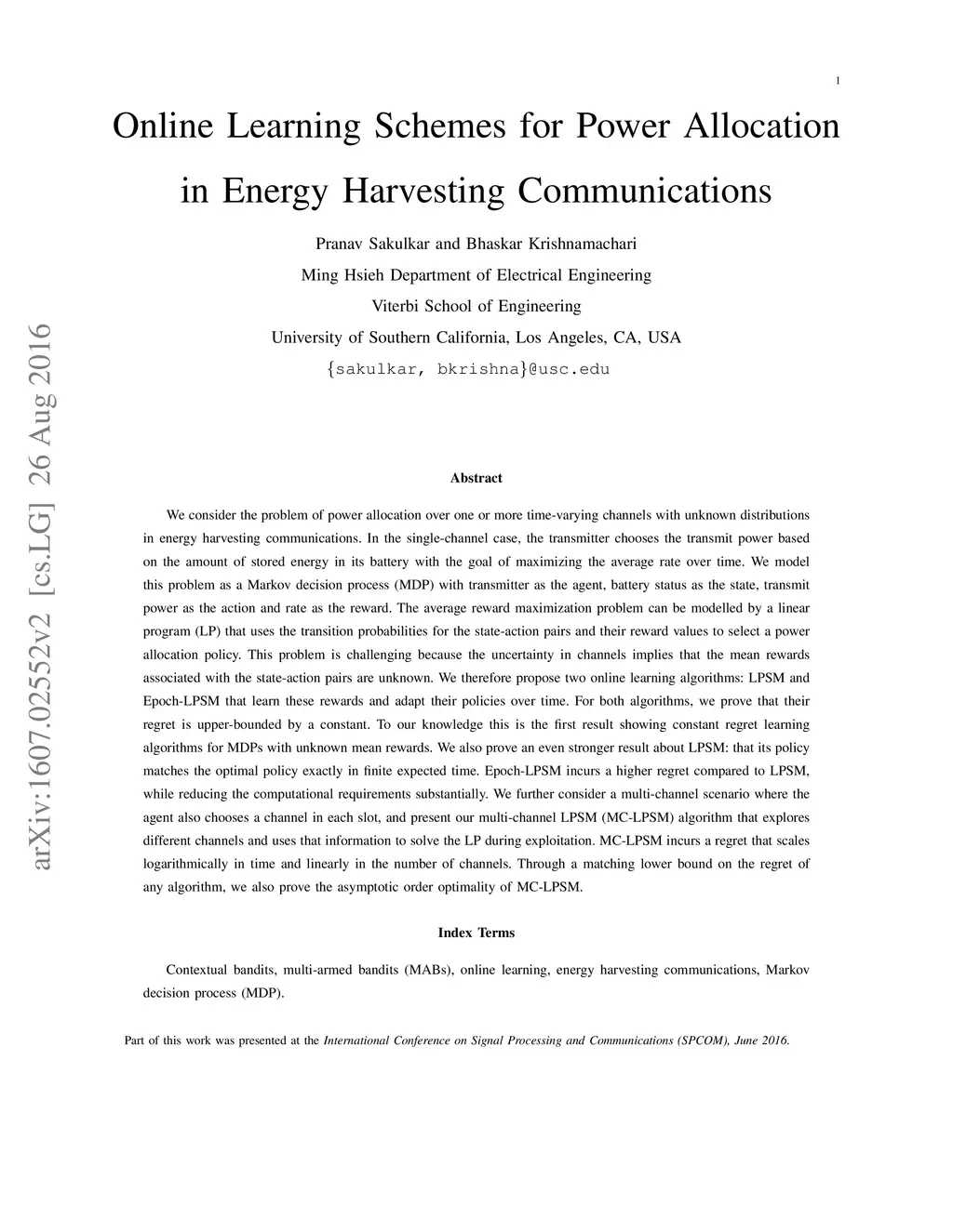 Online Learning Schemes for Power Allocation in Energy Harvesting