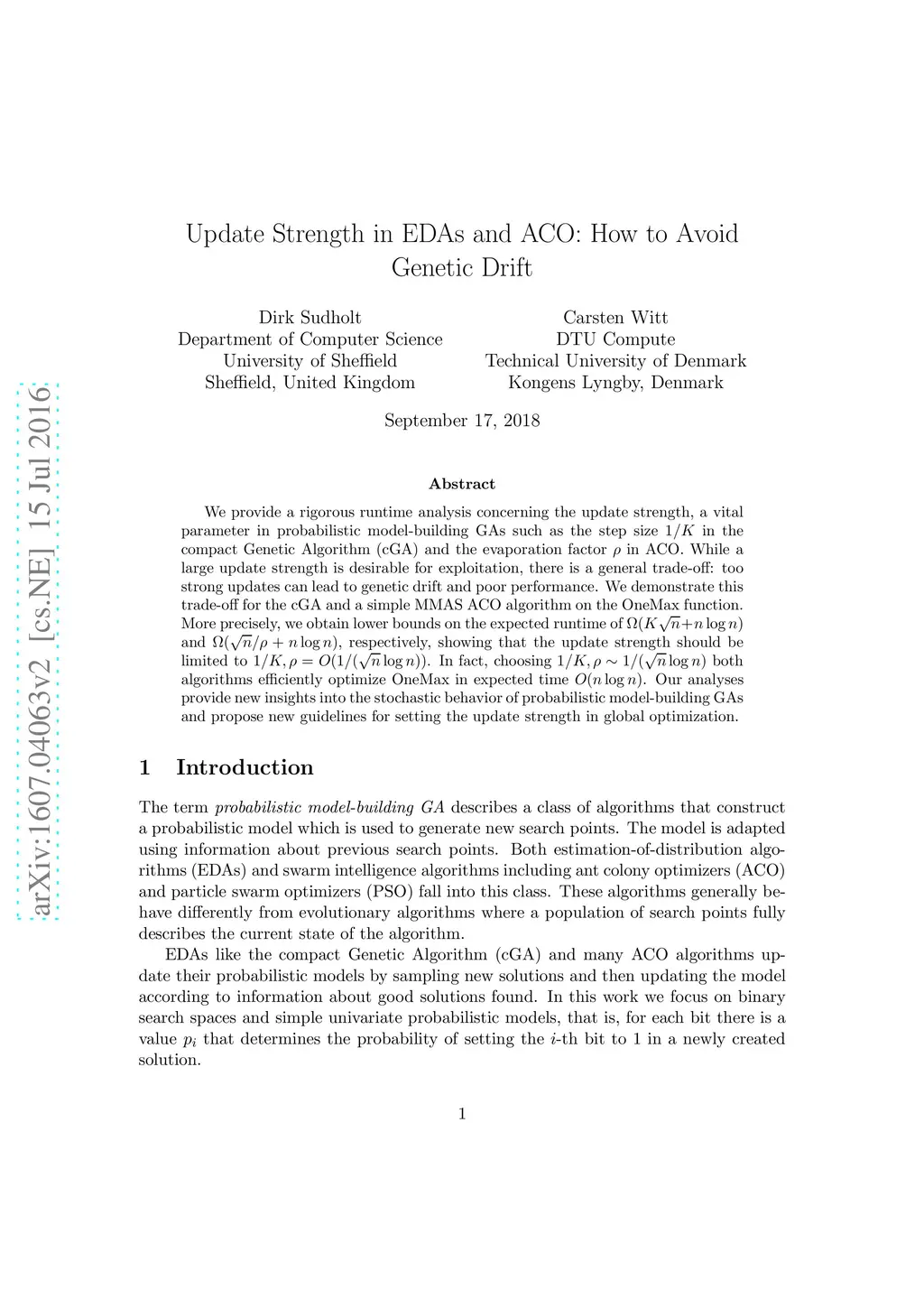 Update Strength in EDAs and ACO: How to Avoid Genetic Drift