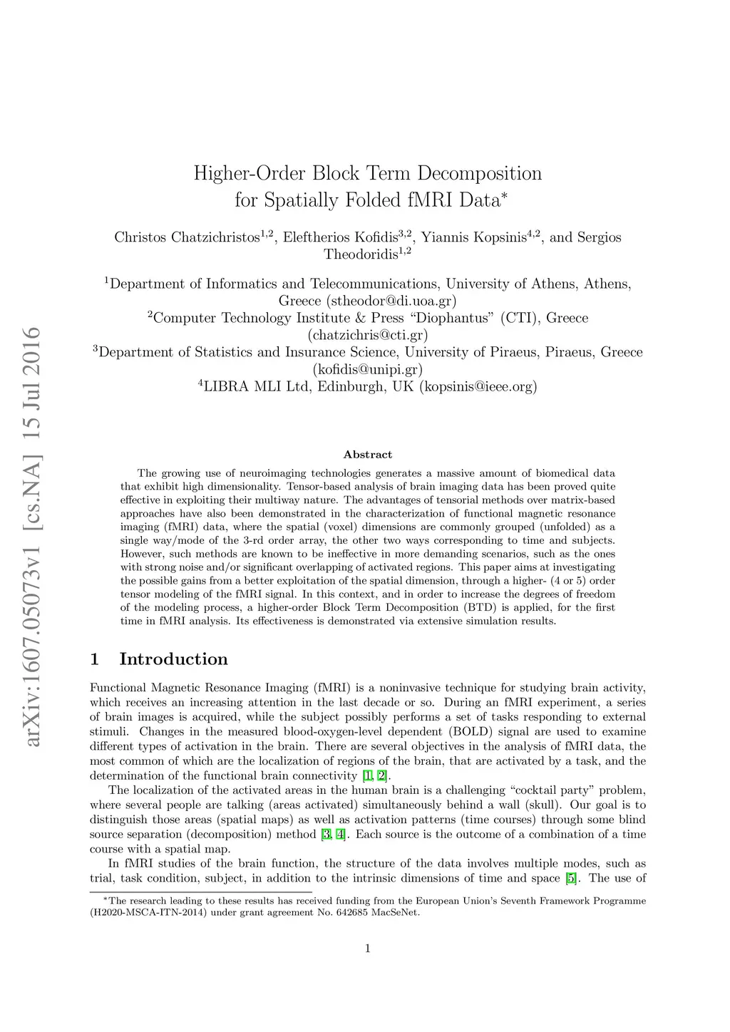 Higher-Order Block Term Decomposition for Spatially Folded fMRI Data