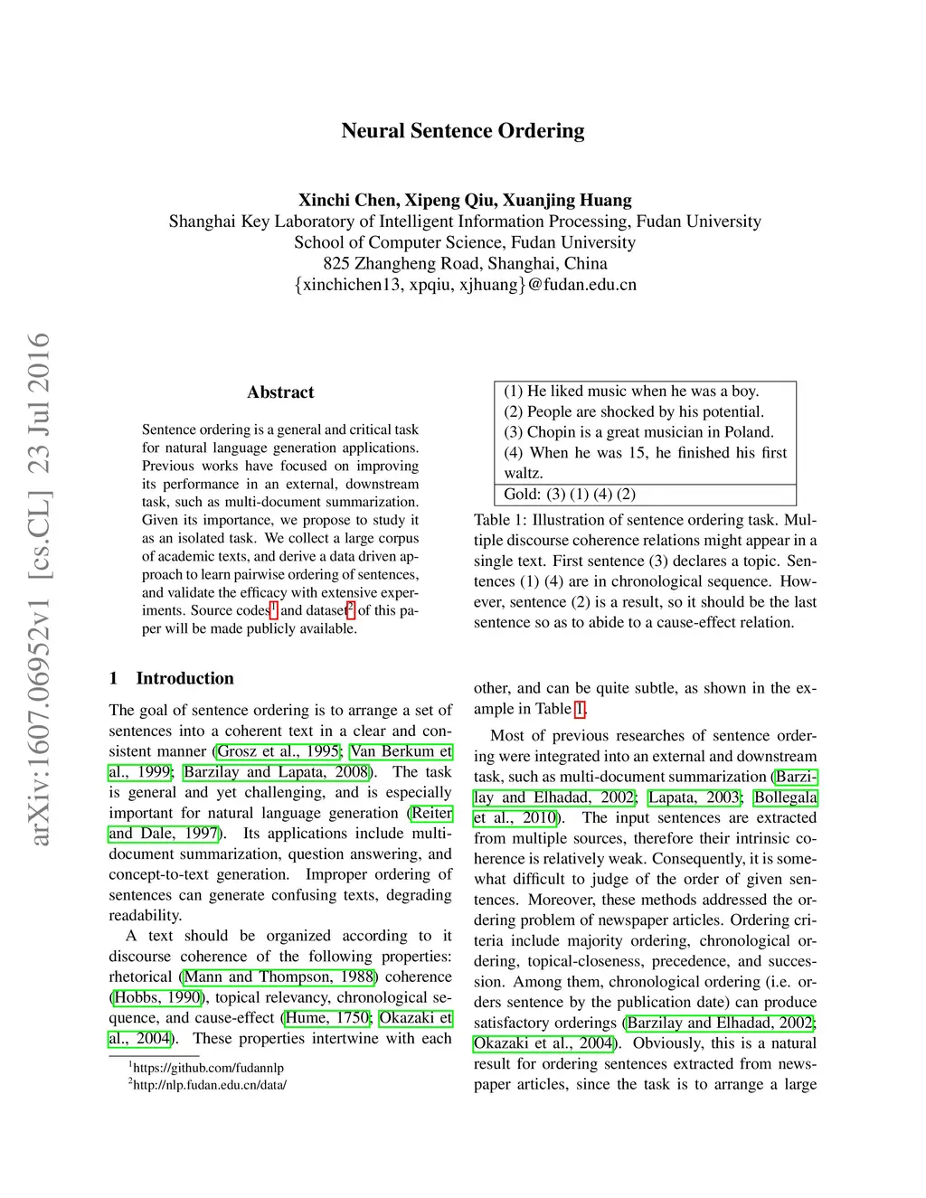 Neural Sentence Ordering