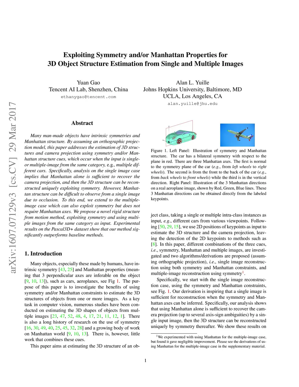 Exploiting Symmetry and/or Manhattan Properties for 3D Object Structure