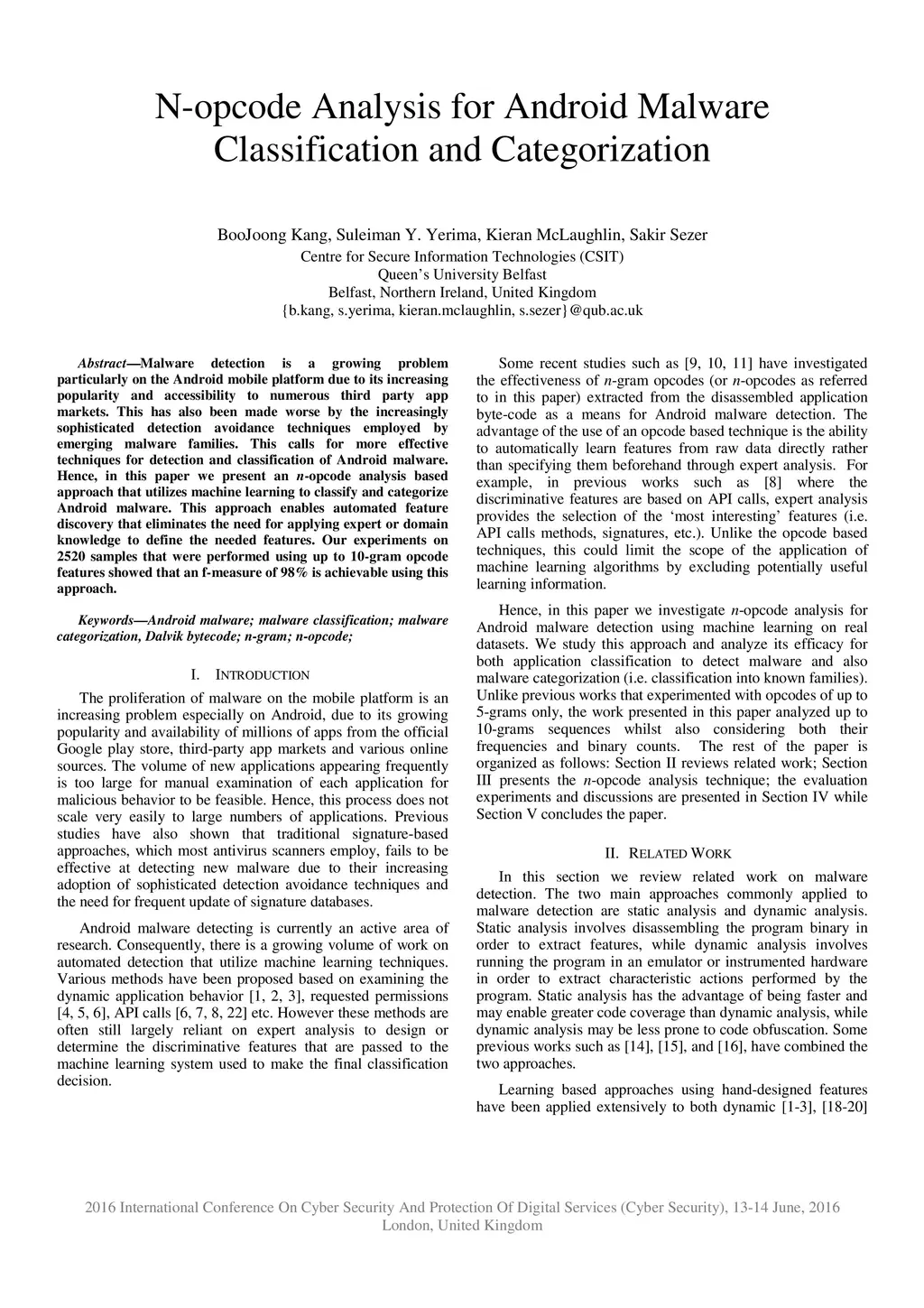 N-opcode Analysis for Android Malware Classification and Categorization