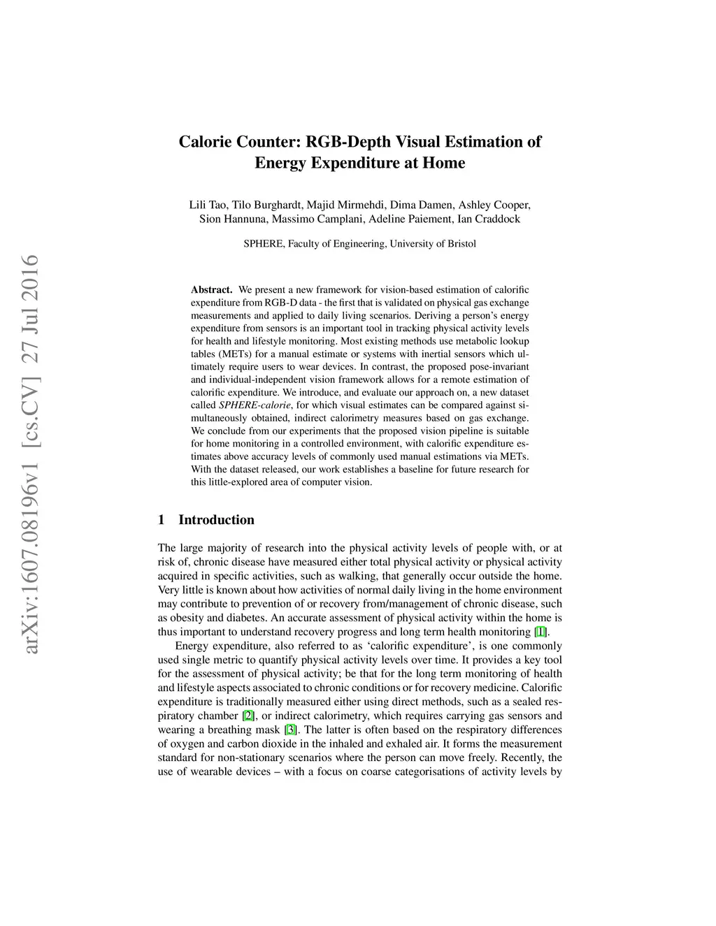 Calorie Counter: RGB-Depth Visual Estimation of Energy Expenditure at