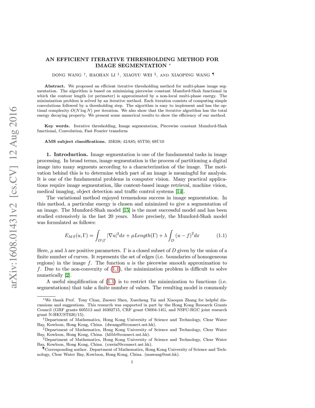 An efficient iterative thresholding method for image segmentation